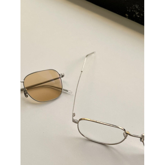 全体的に非常にミニマルな意匠ですが、テンプルの内側の甲丸感やしのみ部のドット、ブリッジ、智など、部位により形状の変化をつけ、カラー展開も当時の時代感を表現。