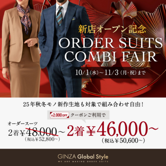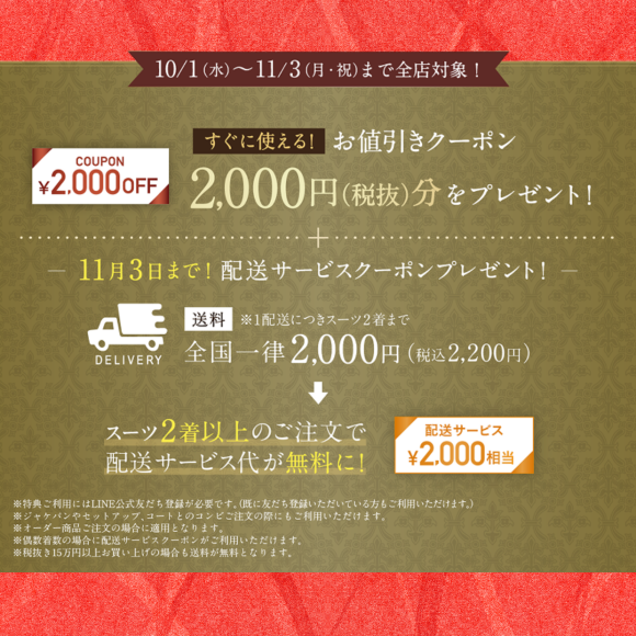 2,000円OFFクーポン付き!オーダースーツコンビフェア開催