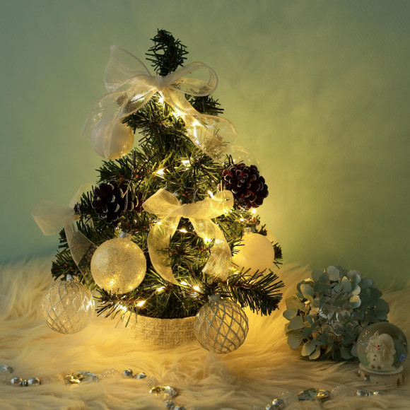大小のオーナメント付きでとっても華やか。ライトも細かくキラキラ光ります。