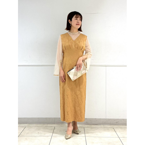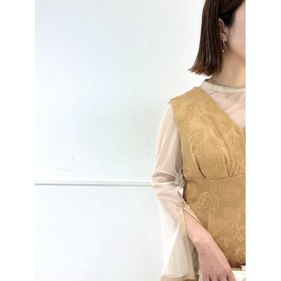 本日はチュールブラウス付きジャガードIラインドレスをご紹介いたします。