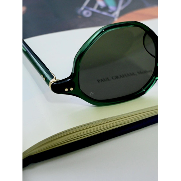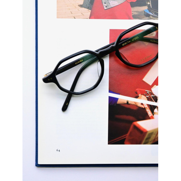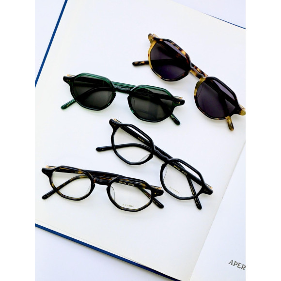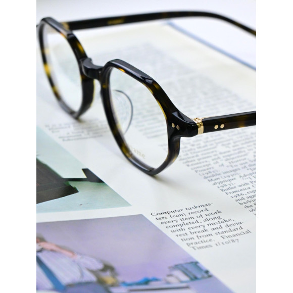 程よい厚みのフロントリムと多角形ながら角を強調しすぎないリムラインが、顔に乗せた時に馴染みやすく、クラシカルながら柔らかい表情を演出できる