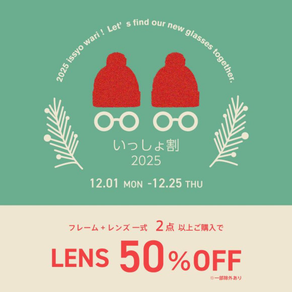 メガネ2点以上ご購入で、レンズ代50%オフ!