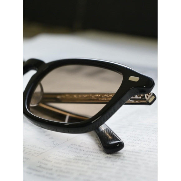 ヨロイに施されたサンプラチナ製の飾り丁番と、横から見たテンプルの二点留めのピンの輝きがアクセントになり、シンプルな中にも高級感を感じられるデザインに仕上がっています。