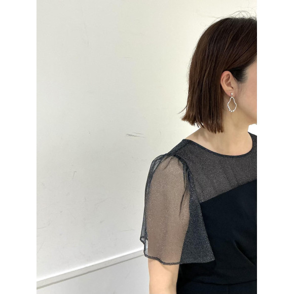胸元のラメチュールの輝きが首回りをスッキリと見せ、