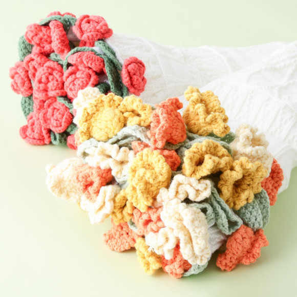 お花は一つ一つ手編みしており、花びらの形状にこだわりました。