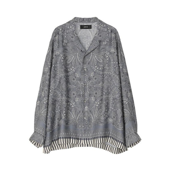 -全面にクラシカルなフローラル×ペイズリー調のスカーフ柄をプリント