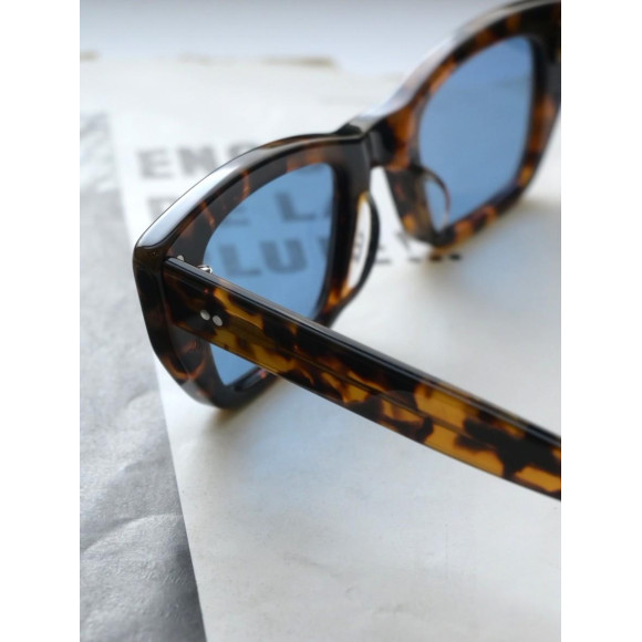 ブリッジからヨロイにかけて厚みを持たせ、角を丸く磨き上げた艶やかなアセテート生地は、
