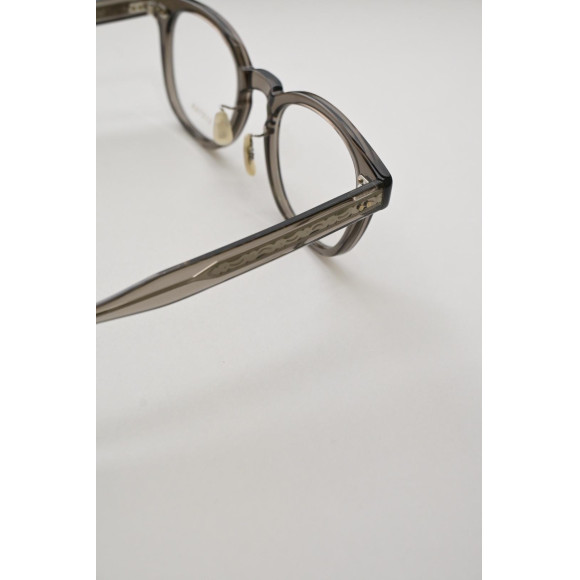 テンプル芯には彫金模様が施され、見えない細部まで拘りがつまった日本の職人によるハンドメイドのフレームです。