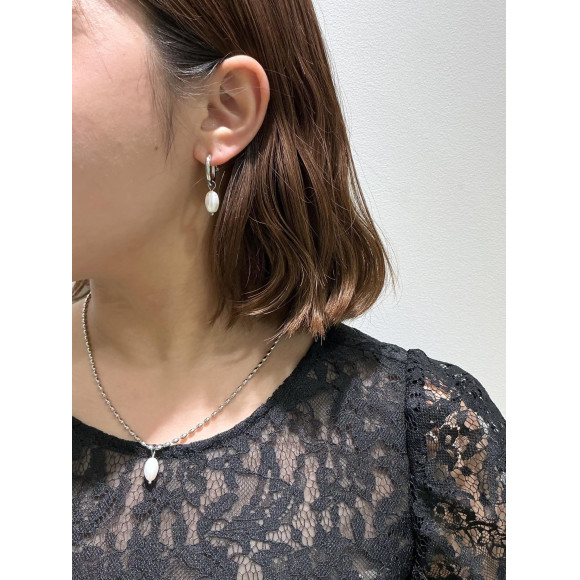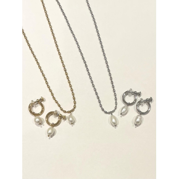 淡水パールがワンポイントの2WAYボールチェーンネックレス& 2WAY フープイヤリング